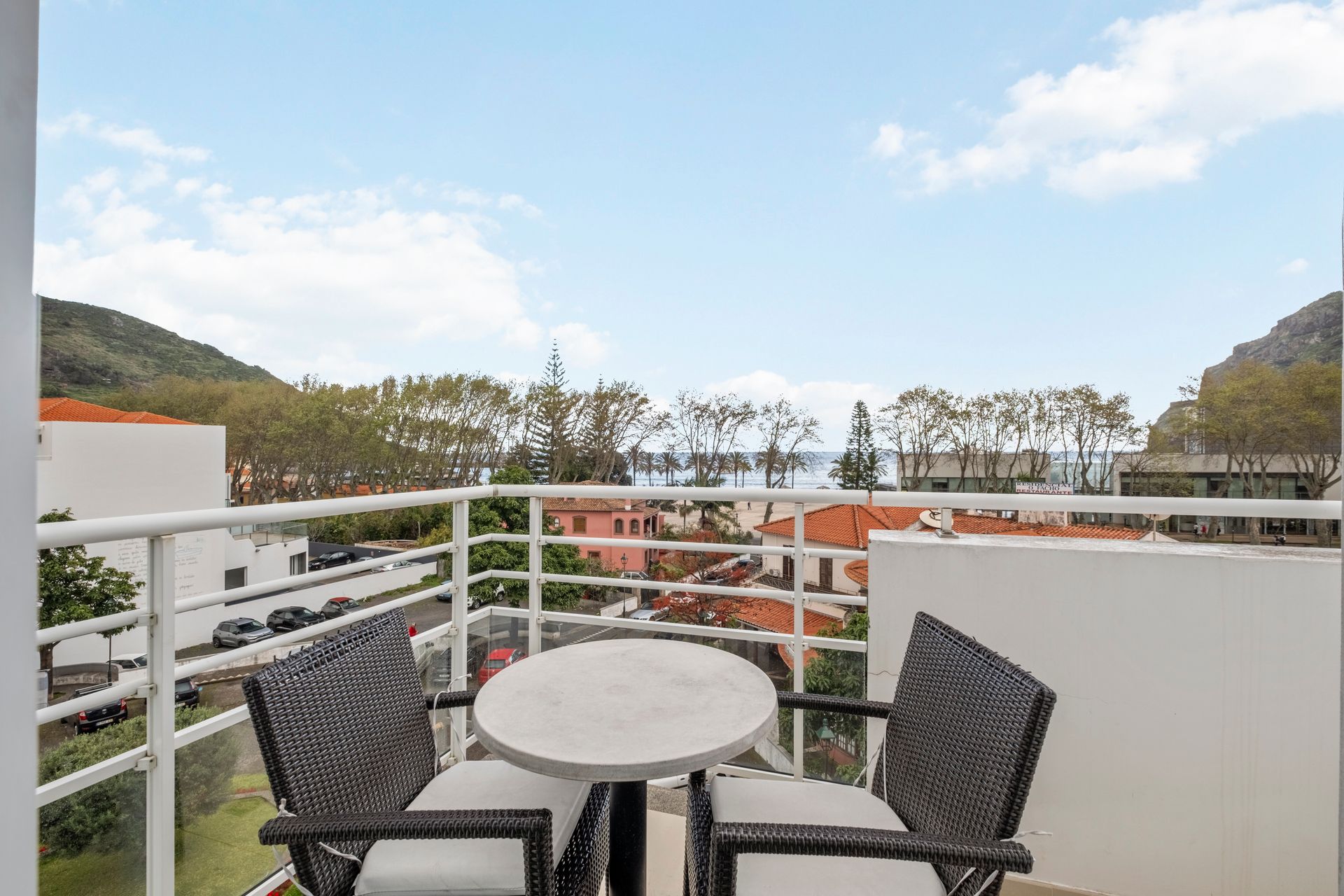 The room is spacious, has a sofa bed also and lets in abundant natural light from the balcony window. The view from the balcony overlooks the town and the ocean.